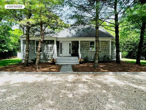 The two additional guest bedrooms share a tastefully designed bathroom. The open living room is a blend of comfort and sophistication with a tray ceiling, a Hicense 120" 4K Smart Laser TV, and a wood-burning fireplace. The separate dining room is an invitation to entertaining, with windows on three sides filling the space with natural light. French doors lead out to a generous rear deck for outdoor relaxation and dining. Cooking enthusiasts will love the oversized galley kitchen featuring stainless appliances and stone counters. For a quiet retreat, there's a separate large den, perfect as a study or TV room. An exciting addition is the remote-controlled, heated, saltwater pool with a stone patio, surrounded by a gorgeous flat lawn on a beautifully landscaped .47 acre lot. The house is packed with features like hardwood flooring, a Sonos system, Nest-controlled heat and air conditioning, smart locks, town water, an alarm system, an irrigation system, and a circular driveway with an EV charging station. Located close to Conscience Point, Town Point, and other stunning Peconic Bay beaches, and just minutes away from Southampton Village, this home also has a great rental history. Discover the charm and beauty of this exceptional property today!