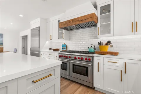 Absolutely stunning single level home on a private corner lot in a cul de sac in the highly sought after iconic Shorecliffs community, just steps away from the ocean! Open concept floorplan with over 1600 square feet of gorgeously upgraded living space and large great room with built-ins and la cantina doors leading out to private yard. Entire home has been recently upgraded including the entertainer's kitchen with oversized center island with seating, upgraded appliances, beautiful quartz counters, white shaker cabinets, all high end stainless steel appliances and much more! Master bedroom has walk-in closet and master bath with vaulted ceiling and skylight. Other upgrades/updates include recessed lighting, ceiling fans, new windows, tankless water heater, AC, fabulous wide plank wood style tile flooring throughout, custom window coverings, custom paint and so much more. Wonderful outdoor living with large private front courtyard with peek a boo ocean view and easy maintenance rear yard with a "She Shed", all new exterior concrete throughout. The Shorecliffs community offers a private beach club located on the sand with a clubhouse, tennis courts/pickle ball courts and more. Additionally, this community is surrounded by the challenging 18 hole Shorecliffs Golf Course which has a newly renovated clubhouse. Short bike ride to downtown San Clemente with awesome dining, shopping and entertainment!