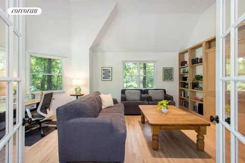 The two additional guest bedrooms share a tastefully designed bathroom. The open living room is a blend of comfort and sophistication with a tray ceiling, a Hicense 120" 4K Smart Laser TV, and a wood-burning fireplace. The separate dining room is an invitation to entertaining, with windows on three sides filling the space with natural light. French doors lead out to a generous rear deck for outdoor relaxation and dining. Cooking enthusiasts will love the oversized galley kitchen featuring stainless appliances and stone counters. For a quiet retreat, there's a separate large den, perfect as a study or TV room. An exciting addition is the remote-controlled, heated, saltwater pool with a stone patio, surrounded by a gorgeous flat lawn on a beautifully landscaped .47 acre lot. The house is packed with features like hardwood flooring, a Sonos system, Nest-controlled heat and air conditioning, smart locks, town water, an alarm system, an irrigation system, and a circular driveway with an EV charging station. Located close to Conscience Point, Town Point, and other stunning Peconic Bay beaches, and just minutes away from Southampton Village, this home also has a great rental history. Discover the charm and beauty of this exceptional property today!